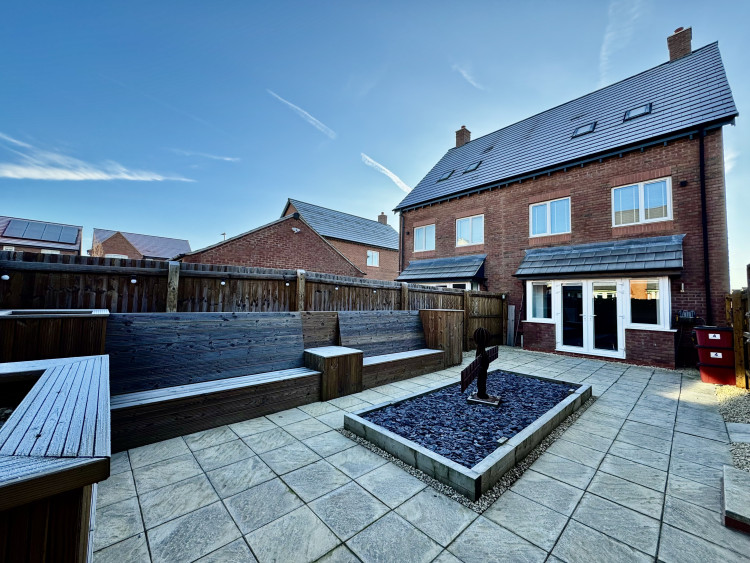 All three double bedrooms benefit from en suite facilities or access to a family bathroom, with additional luxuries including a dressing area and extensive storage options such as boarded eaves and a SMART-roof loft. Outside, the home provides a generous three-car driveway with an Ohme Pro EV charger, a single garage with upgraded lighting and electrics, and a stylish rear garden ideal for entertaining, complete with built-in seating and outdoor power.
